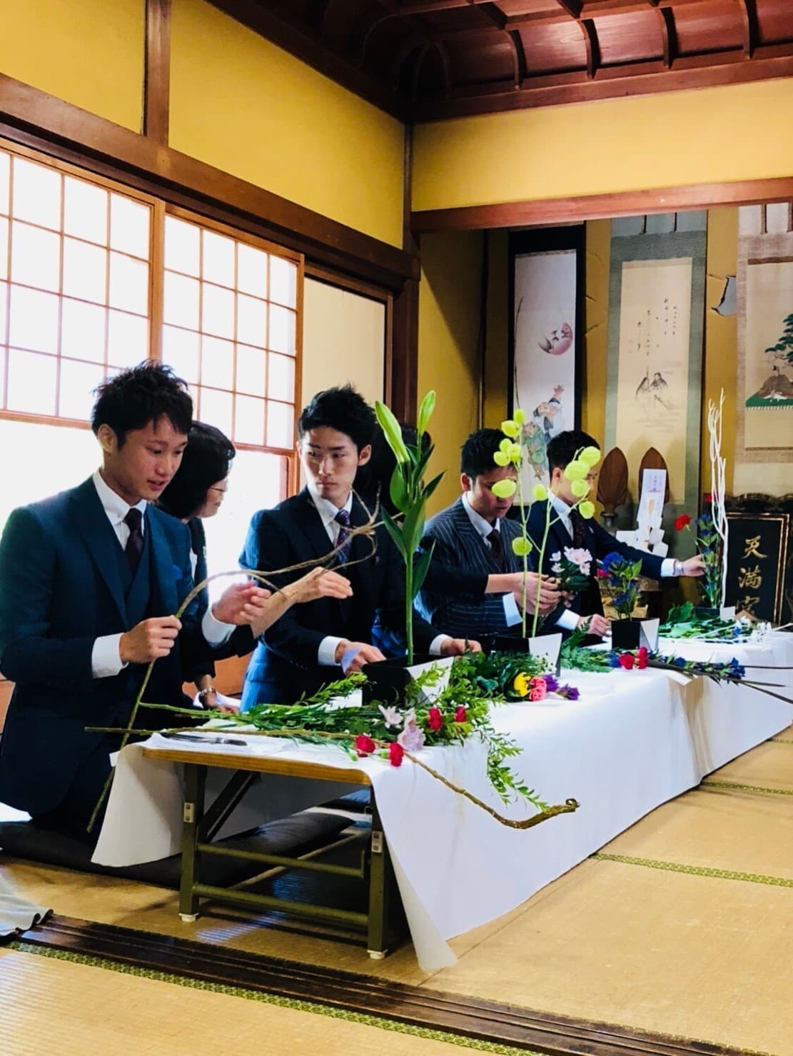互いに内面磨くために華道を体験していただきました。