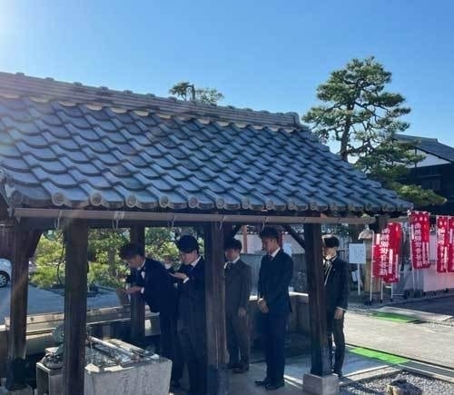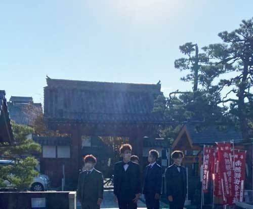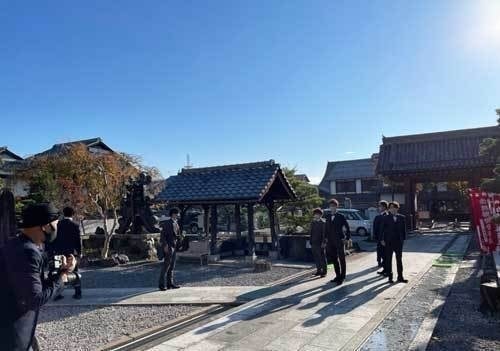 宗安寺で1枚目の集合ポージング写真の撮影