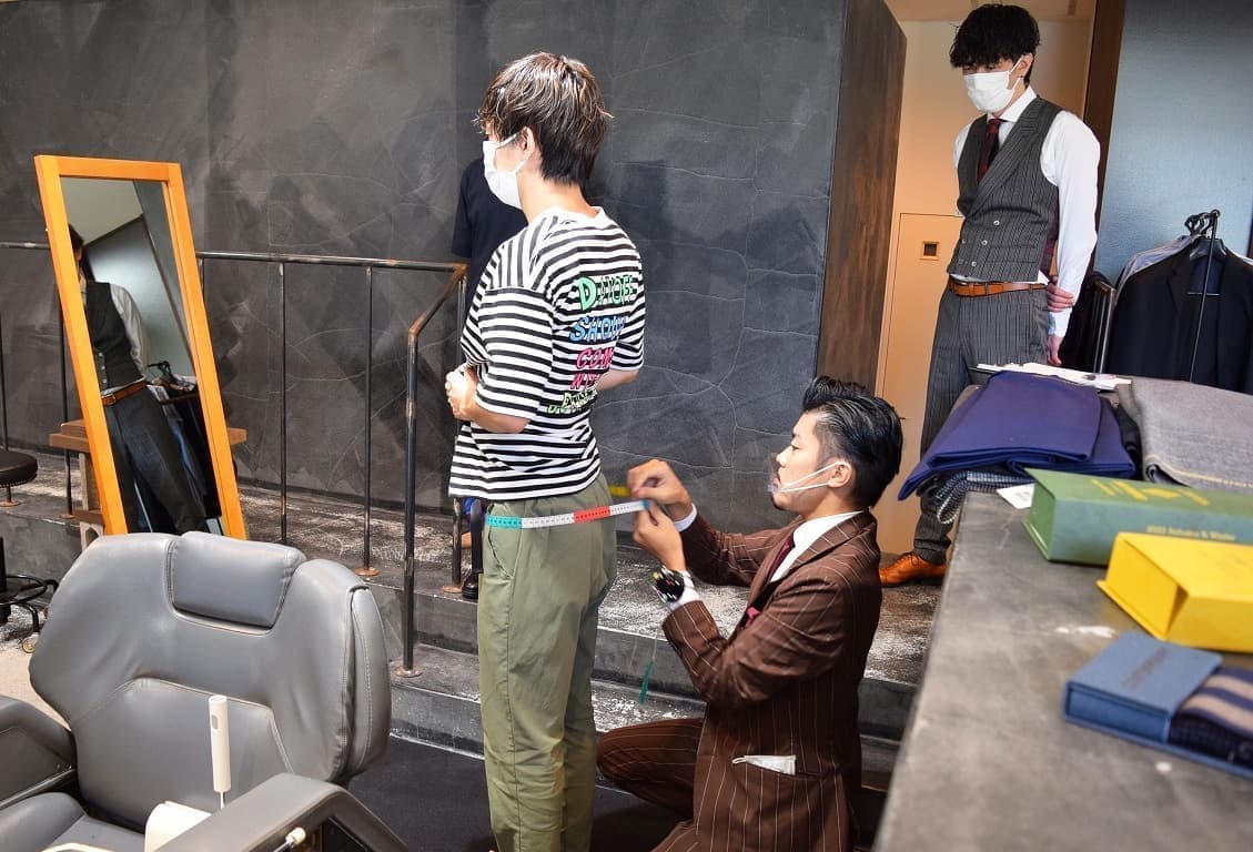今年のメンバーは、スポーツ選手やスポーツをしていた体格が立派な体形が多く、細部までしっかり採寸して頂きました。