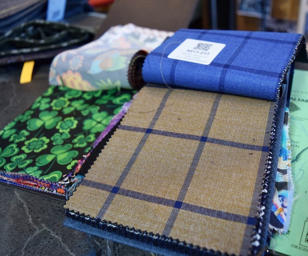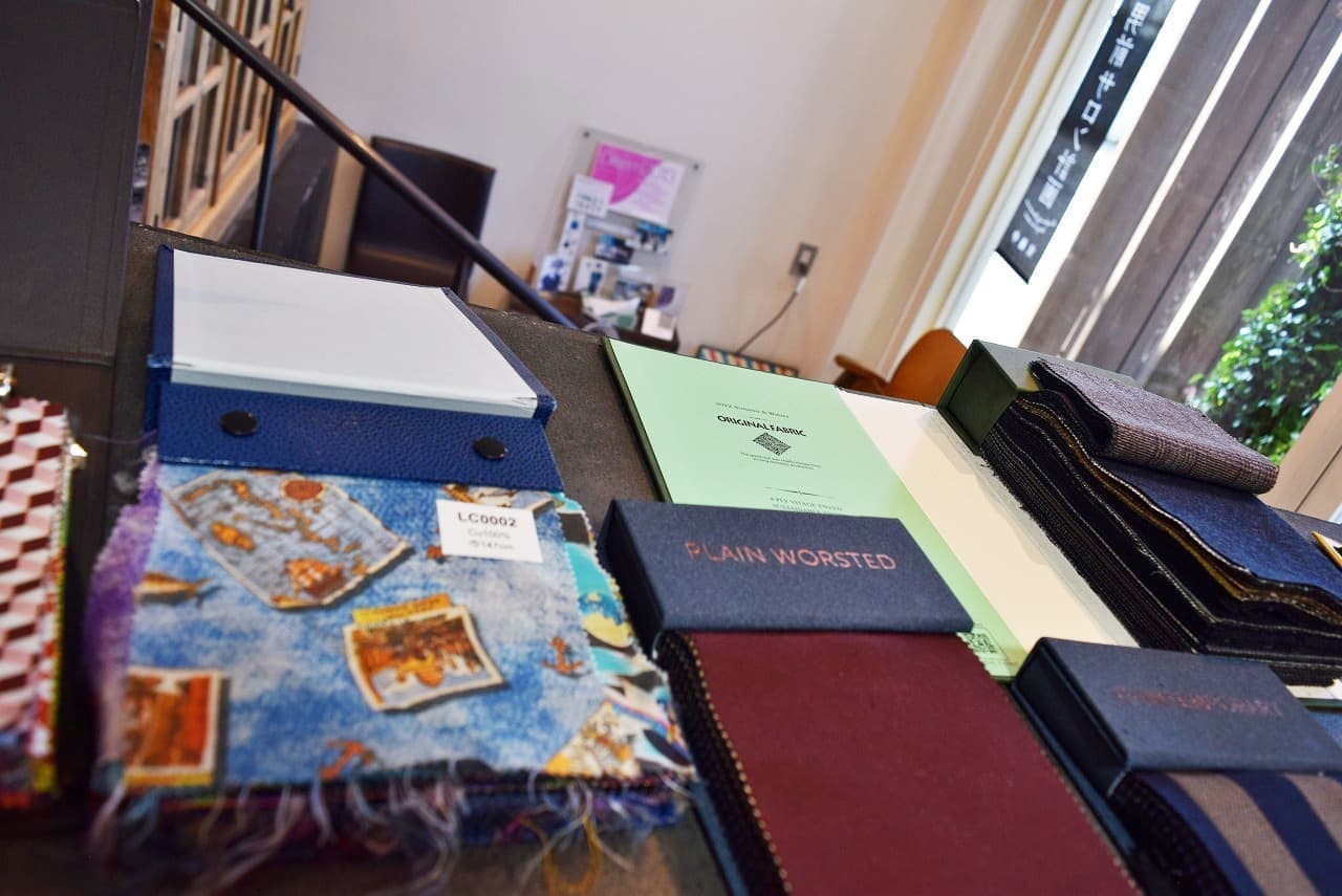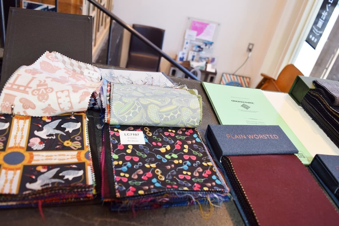 生地の見本帳のこと。 生地の色や柄、触ることもできるので手触りもわかります。