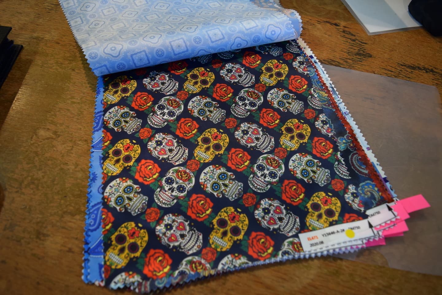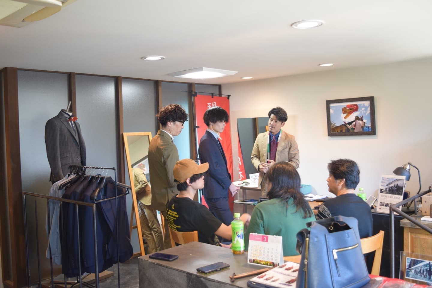 1000種類もある生地から事前に一人一人に合う生地を絞りこみ、今回の元服式の主役である20歳の若者に、一番似合う、色やデザインを提案します。