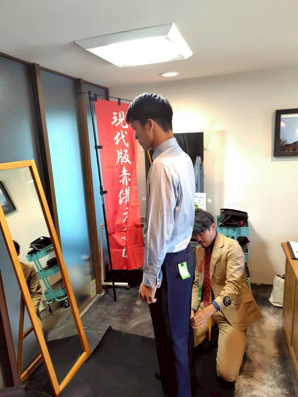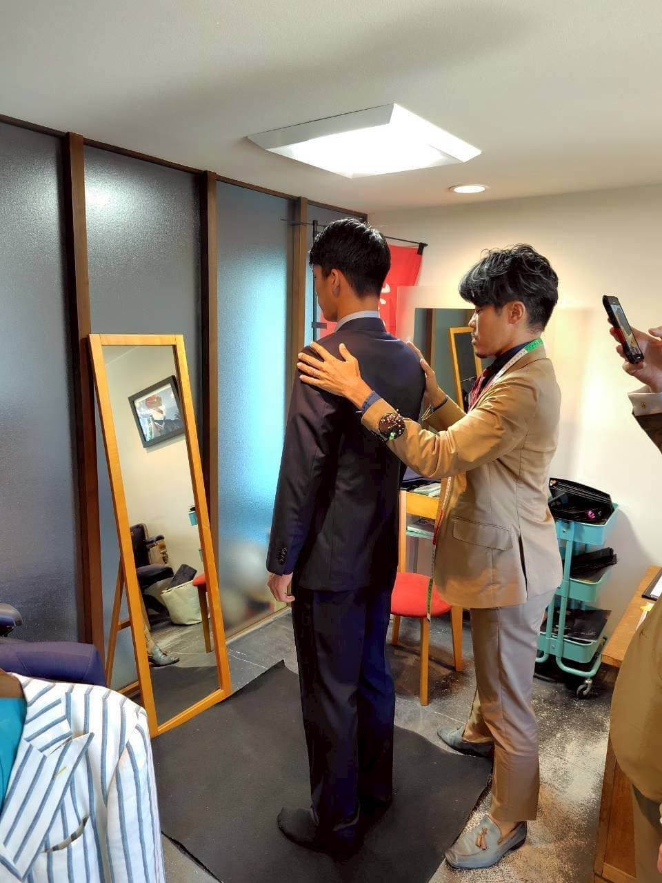 今年のメンバーは、スポーツ選手やスポーツをしていた体格が立派な体形が多く、細部までしっかり採寸して頂きました。