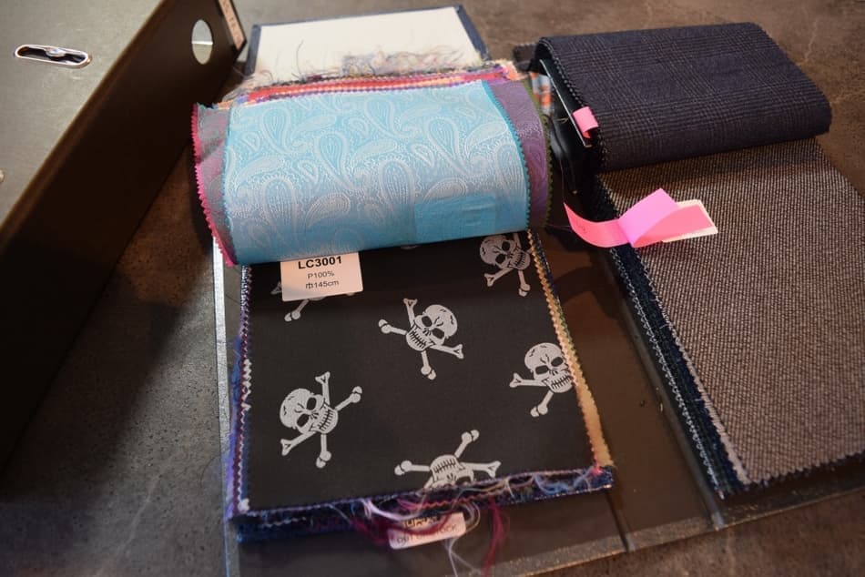生地の見本帳のこと。 生地の色や柄、触ることもできるので手触りもわかります。