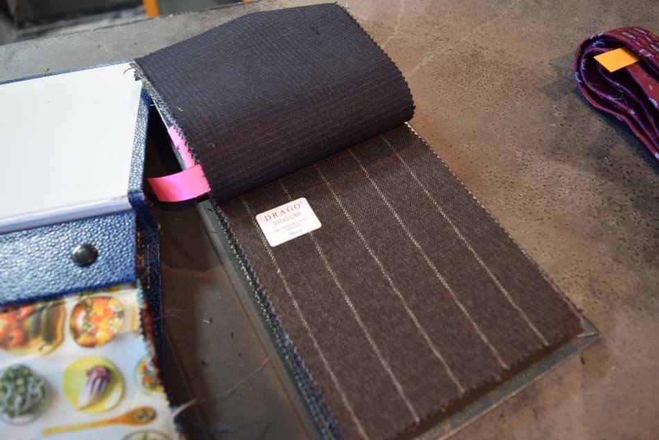 オーダースーツの生地の見本帳「生地番」があります。