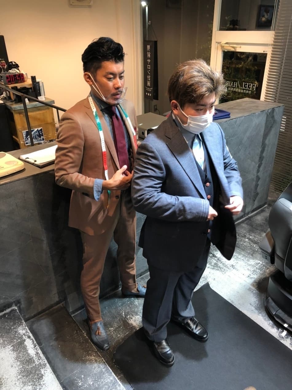 ジャケットの襟の形や、ステッチの色、裏地選びと、どこまでも自由な「オーダースーツの誂え」にスタイリストと成人、そして親とで作り上げた、思い入れのあるスーツに仕上がりが楽しみです。