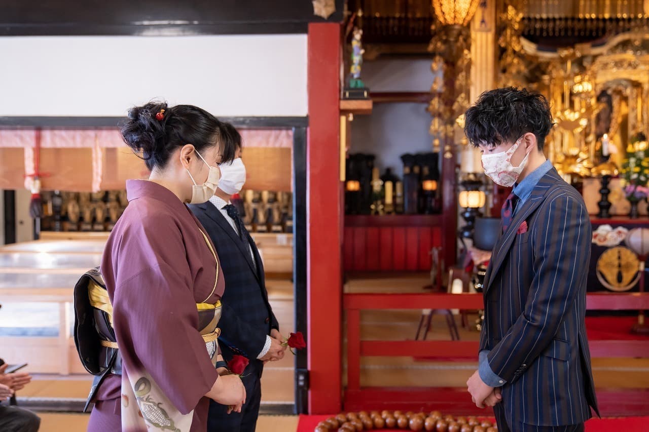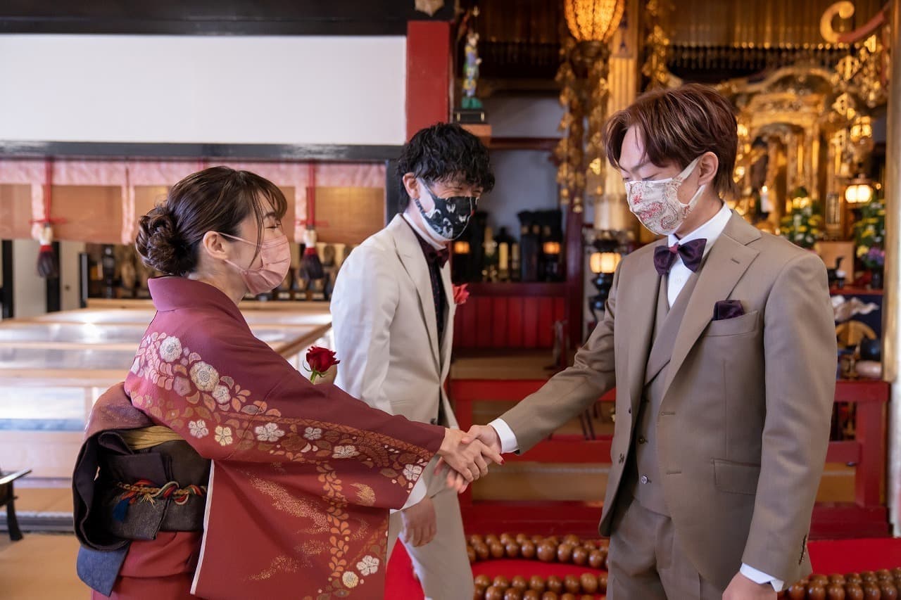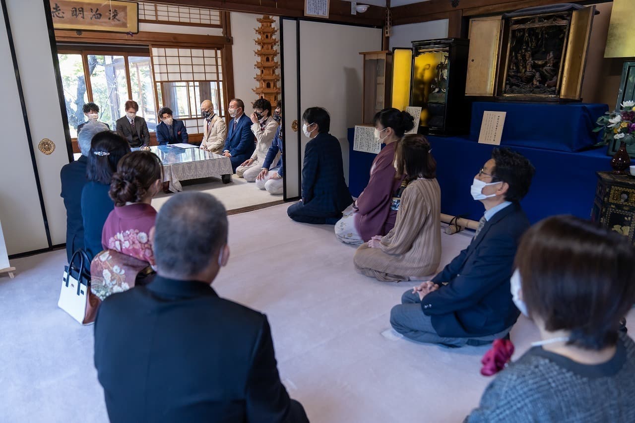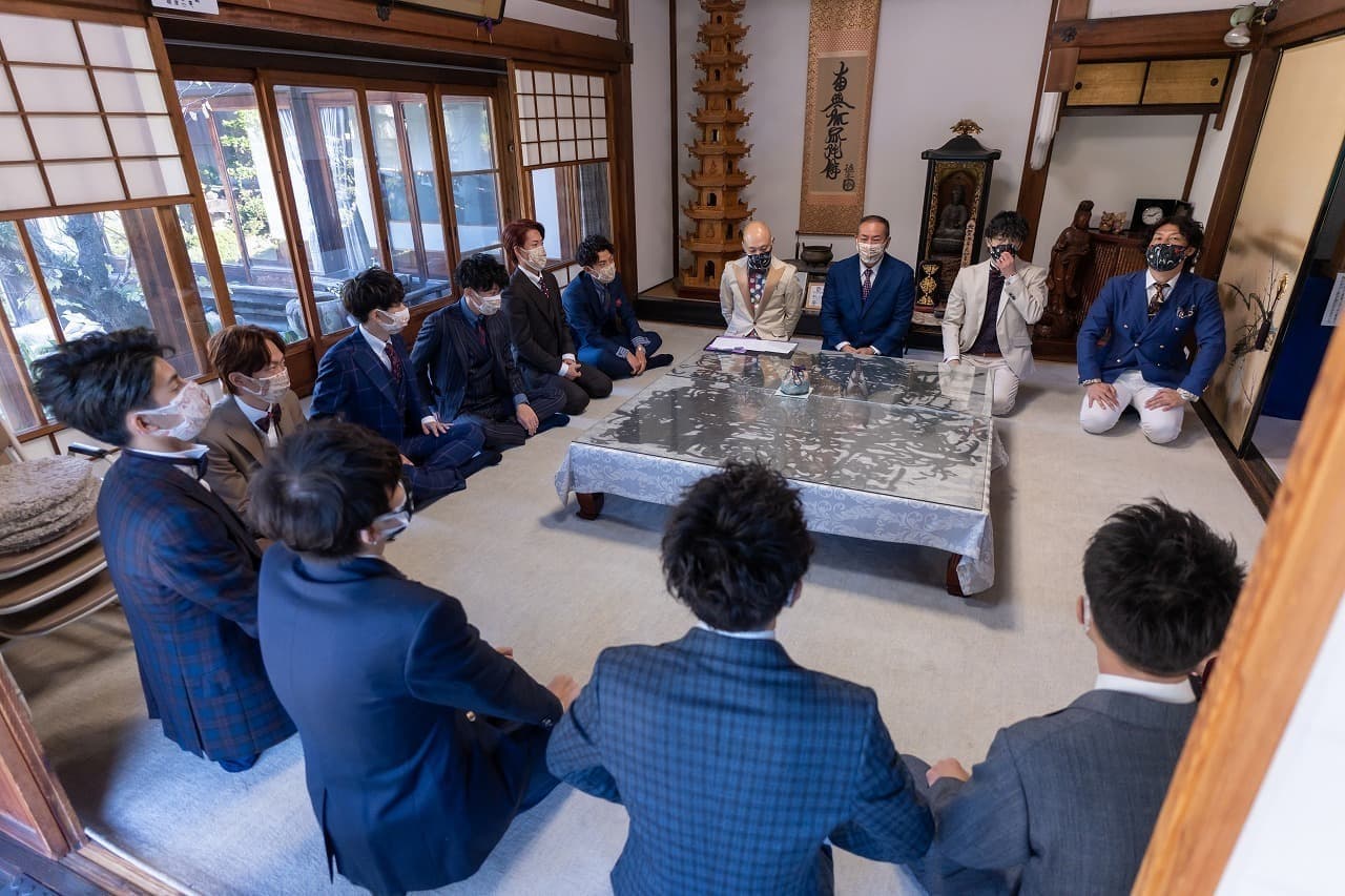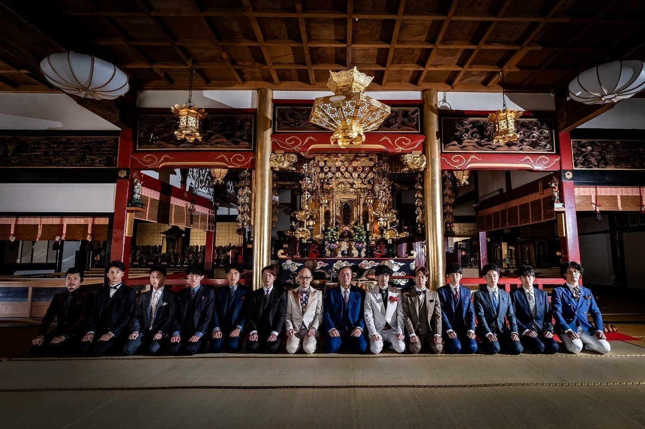 宗安寺で1枚目の集合ポージング写真の撮影