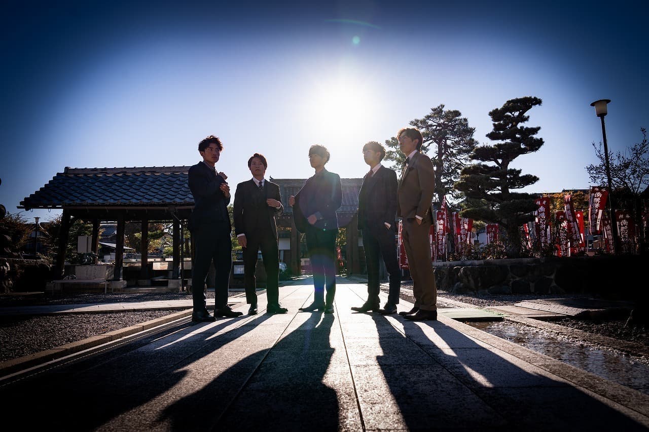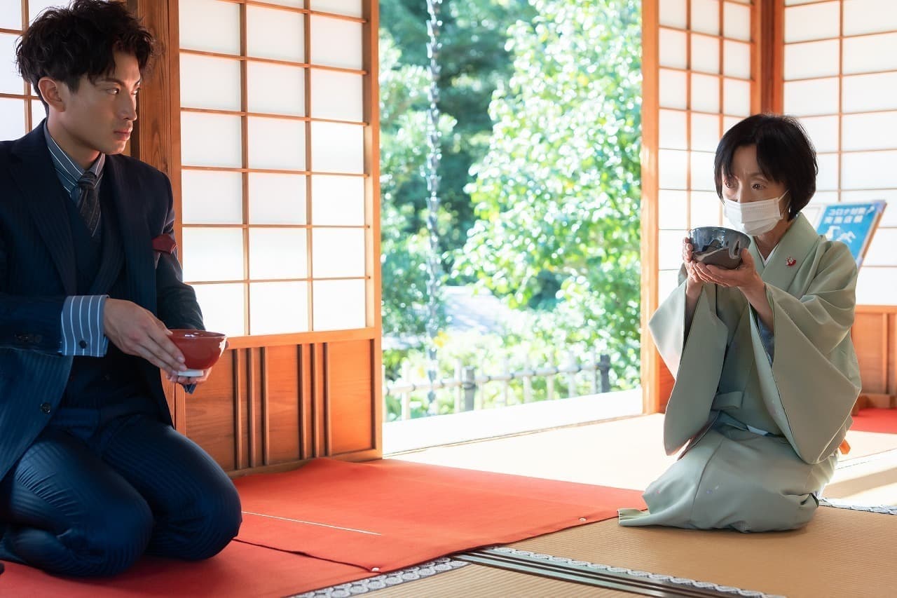 元服式を終えて、大人になった彼ら5人は、玄宮園にある茶室「鳳翔台」にて5名揃って茶道を体験しました。