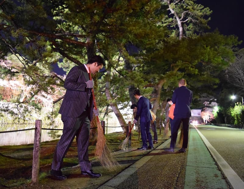 彦根城博物館の周辺を清掃