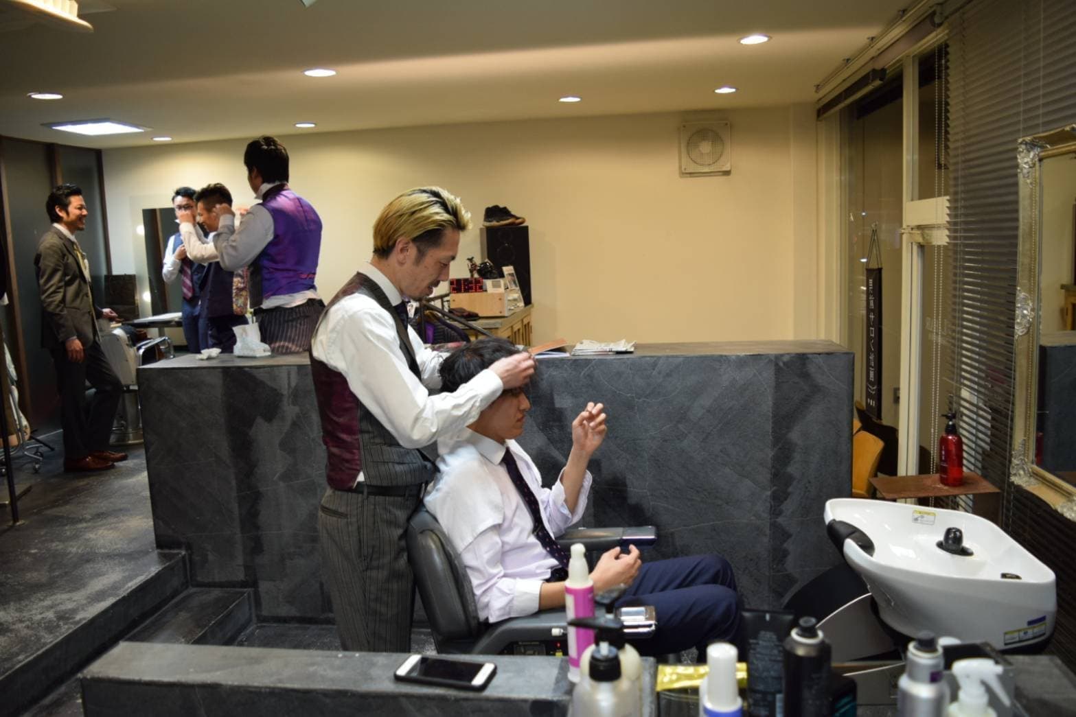 セルフスタイリングをしています。 そこで、いつものスタイリングを各自が再現です。。その途中で、ワンポイントアドバイスで、ドライヤーの使い方をレクチャー。