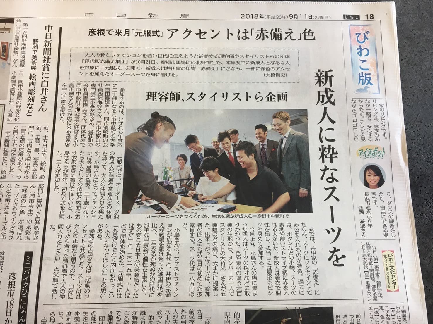 20180910 中日新聞様に掲載されました。